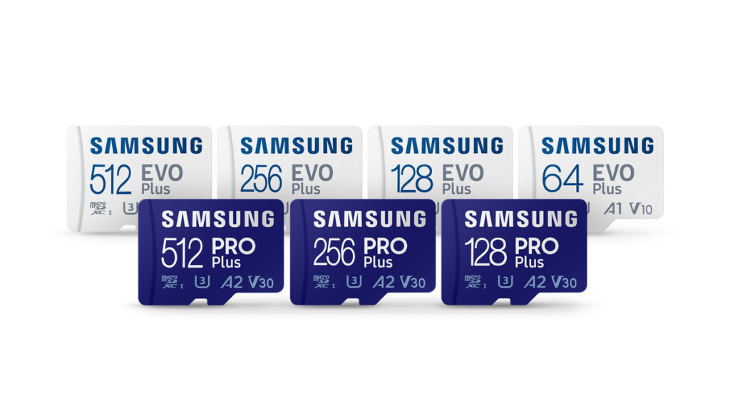 PRO Plus microSD cards, a new addition to Samsung’s microSD lineup, are designed for more discerning content creators, offering exceptional read and write speeds of up to 160MB/s and 120MB/s,6 respectively. The PRO Plus microSD cards will be available in 128GB, 256GB and 512GB capacities.
